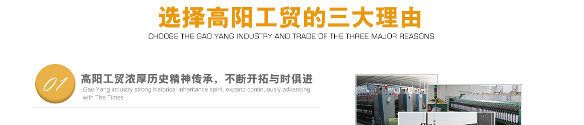 太倉市高陽工貿有限公司是專業從事特種紗生產十數年的一線生產廠家,坐落于江蘇省蘇州市太倉市雙鳳鎮新湖建湖路29號,太倉隸屬長江三角洲經濟圈,交通便捷,經濟發達,是著名的紡織生產基地。 公司歷史要追溯到1982年就成立的新湖毛紡織廠。1996年,毛紡織廠與上海二十二棉在新湖聯合組建了太倉市新湖福利綜合廠。2002年為適應市場的飛速變化,公司轉制重組更名為太倉市高陽工貿有限公司。同時公司適時調整生產經營策略,調整產品品種結構,把生產特種紗作為主要發展方向,純棉、滌綸竹節紗是我們的主要產品。 公司多年來始終保持了持續穩定發展的良好勢頭,在激烈的市場競爭中發展壯大,不斷前行。我們把“走品牌發展之路,創紗線知名商標”作為公司持續發展的核心戰略。以市場為導向,堅持“以品種求發展,以質量求生存”的方針,以增強市場競爭力為中心,對不斷變化的市場環境作出快速反應,品牌戰略的實施。公司注重專業人才的引進和先進技術的生產化應用,具備較強的研發設計和生產能力。 公司一直把“品質、創新、誠信”作為企業文化建設的核心。以品質來獲得客戶的滿意,以創新來贏得客戶的贊賞,以誠信來博得客戶的信心。我們把“準時的交貨期,提供零缺點的產品和服務”作為奮斗目標,贏得了客戶的支持和良好的市場信譽。 高陽工貿有限公司愿與廣大客戶加強合作,共享信息,迎接挑戰,共同發展??蛻粜枨?。了解詳細>>